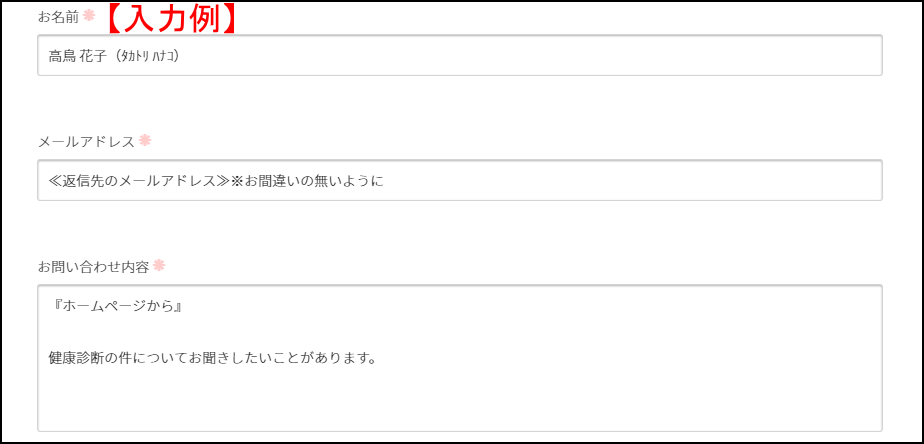 ・今現在、メールでの健康診断の予約は受け付けていません。